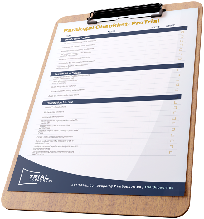 We collect all trial data, prepare custom graphics, produce depo clips, and more.